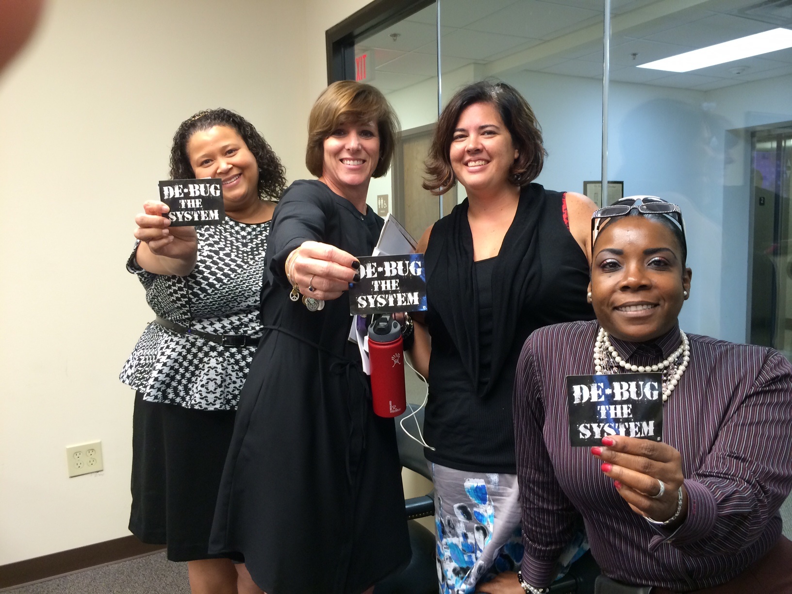 Making connections between community stakeholder and defender offices! Here, our friend Debra, who run Women of Power, gives her info to Christine, head of the Federal Defenders. These connections is what will tip the scales of justice.